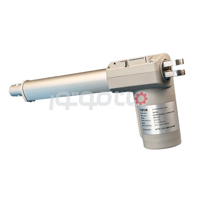 | نام کالا | جک برقی ماناک 6000 نیوتن کورس 20 سانت، سرعت 6 میلیمتر بر ثانیه 24 ولت، مدل LAT31 |
